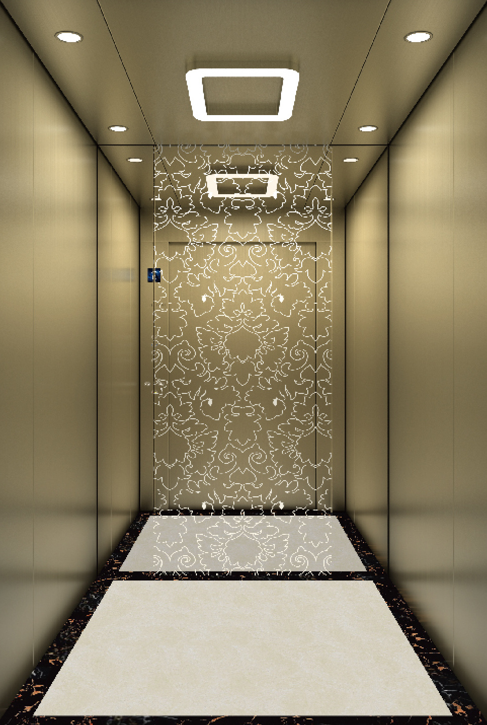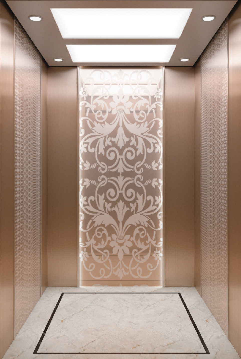 - CAR WALL : Two side walls, front wall and rear wall auxiliary panel Ti-gold hairline st.st., rear wall central panel Ti-gold mirror st.st